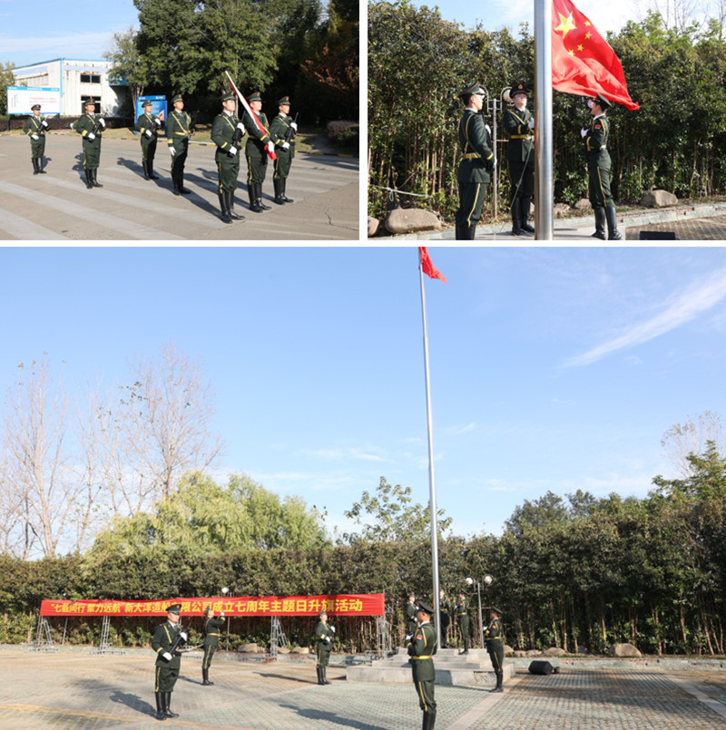 11月20日,苏美达船舶旗下新大洋造船举行“七载同行、聚力远航”主题升旗仪式,庆祝新大洋成立7周年。苏美达股份有限公司总经理助理、苏美达船舶党委书记、董事长何隽,苏美达船舶党委副书记、总经理徐斌,新大洋领导班子成员和各部门员工代表参加升旗仪式。
