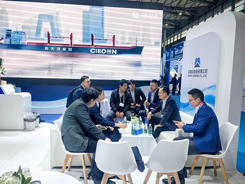 展台之上,苏美达船舶通过数字演示、模型陈列等展示形式,呈现 “造船 + 航运” 一体两翼的发展格局,吸引了众多海内外客户驻足咨询、深入洽谈。