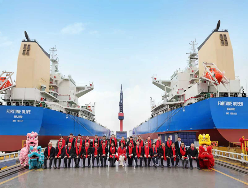 1月19日,苏美达船舶为CIDO SHIPPING首制两艘皇冠 82系列散货船“Fortune Olive”和“Fortune Queen”举行命名仪式。CIDO SHIPPING副总裁Ma In, 苏美达副总经理、苏美达船舶党委书记、董事长何隽、ABS全球副总裁Ezekiel Davis等领导和嘉宾出席仪式。